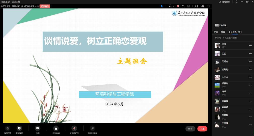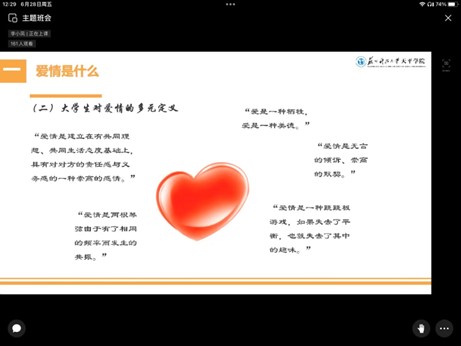 2024年6月24日起,永利官网各班陆续组织开展关于“树立正确恋爱观”的大学生心理健康课,旨在使永利官网学子形成健康的恋爱心理,提高学生恋爱挫折承受力和思想水平。临近期末,为不影响同学的复习节奏,本次教育主要利用网上班会的形式举行。此次心理教育健康课主要分为三个部分:什么是爱情、大学生的爱情心理、追求健康的爱情。利用理论与实例结合的方式培养永利官网学生健康的恋爱理念。