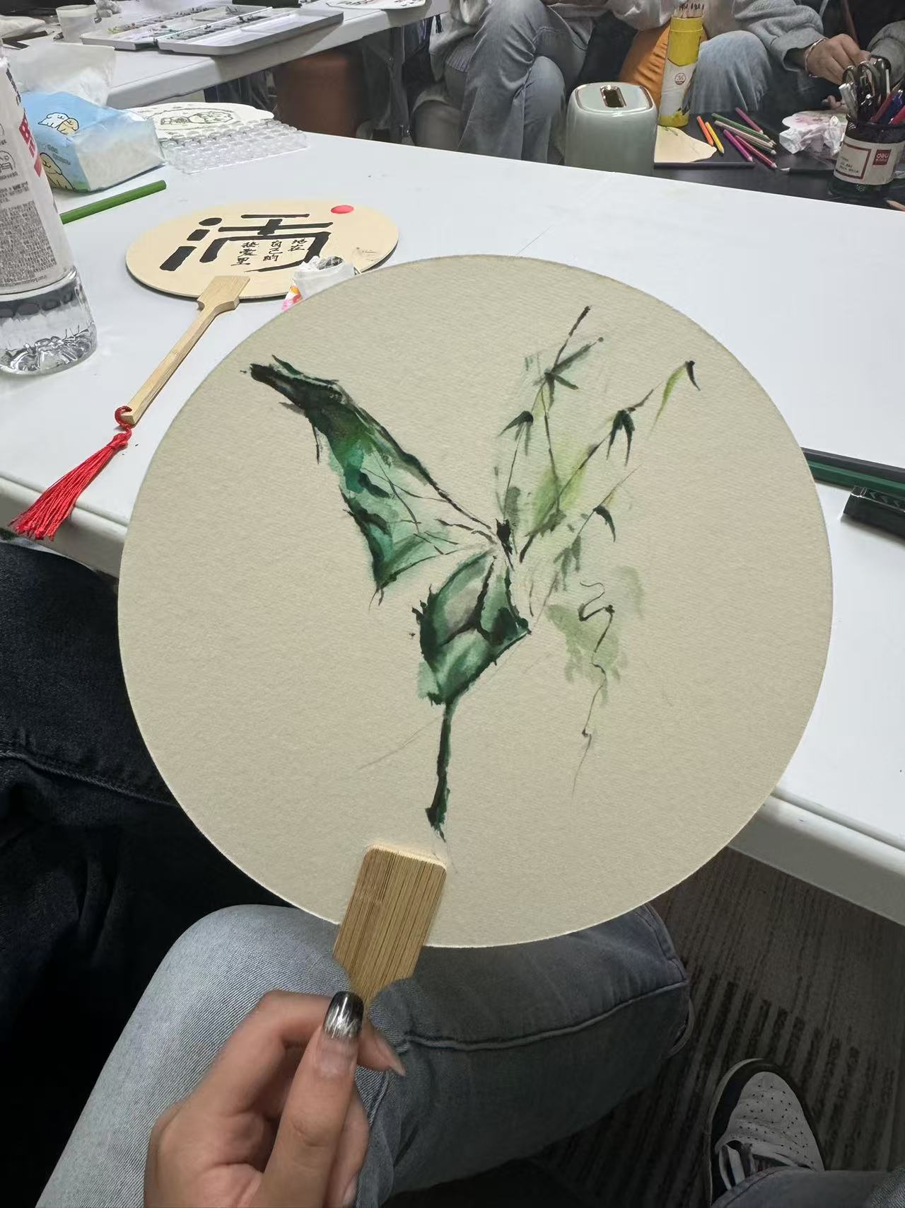 在此次活动中,学生们围坐一处,手握画笔,全神贯注地在扇面上勾勒出内心的一方小天地。有的同学描绘自然风光,“依依堤边柳,泛泛水中舟”,仿佛透过扇面看到了实景;有的精心绘制生命之灵趣,“翩翩花间舞,轻盈似梦浮”,灵动的画面令人深切感受到生命的蓬勃活力与无尽美好。