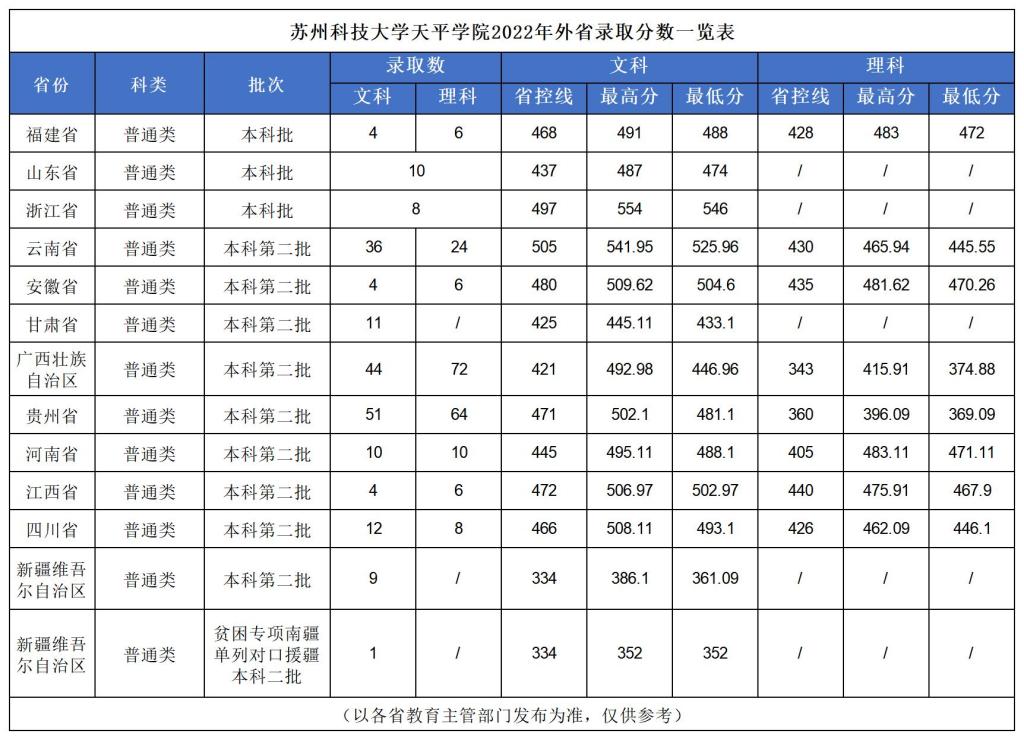 2022年外省录取分数线一览表